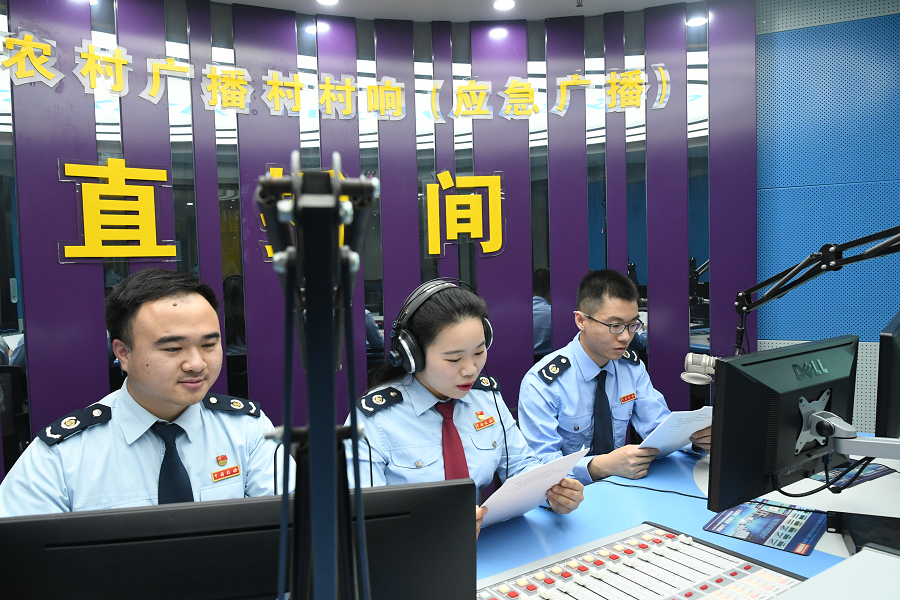 (浏阳市税务局青年干部通过“村村响”广播进行社保宣传)