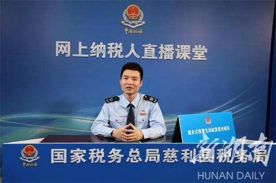9:00,“慈利县税务局网上纳税人直播课堂”正式开播。他端坐摄像机前,脑袋里回转着昨晚背熟的课件,语音铿锵,不紧不慢地从什么是留抵退税、如何申请、金额怎么计算等角度,向在线的学员们细细解读退税政策。