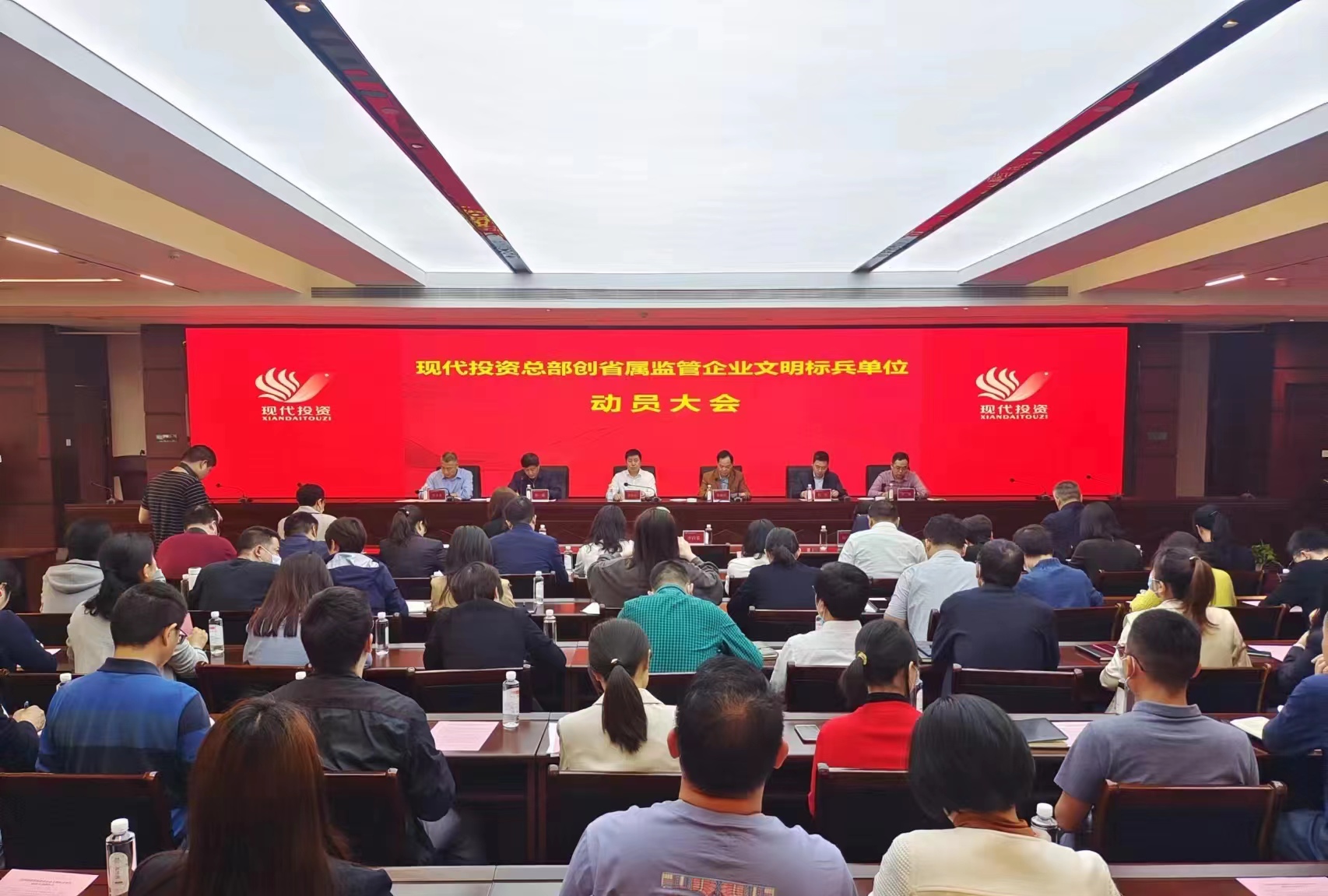 公司党委委员、监事会主席雷楷铭主持会议,党委副书记陈敏宣读《现代投资股份有限公司总部2022年创建省属监管企业文明标兵单位实施方案》。公司党委班子成员、高管、总部全体员工参加。
