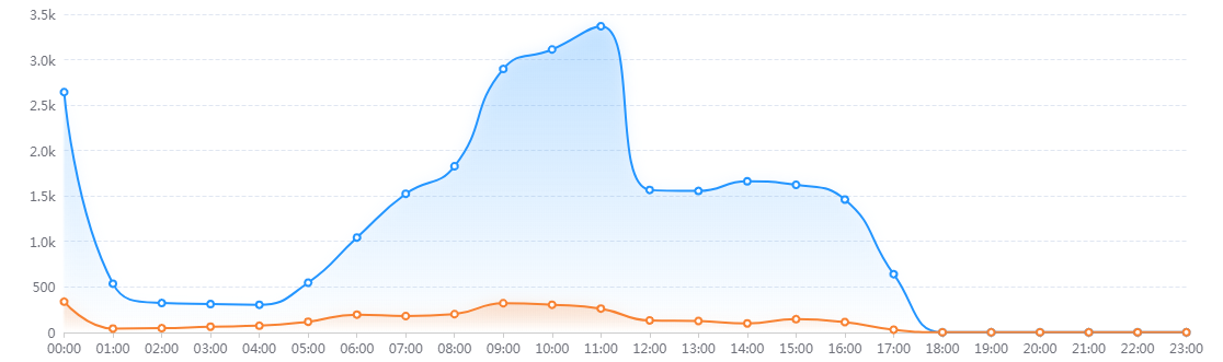 今日省内核心数据总量共有26932条,核心数据峰值产生在上午9点—11点