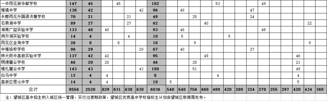2.每所初中学校原则上分配2所或2所以上优质高中学校指标生计划,其中1所为师大附中、市一中、长郡中学、雅礼中学四所学校中的一所,另外的1-2所为其他优质高中学校。
