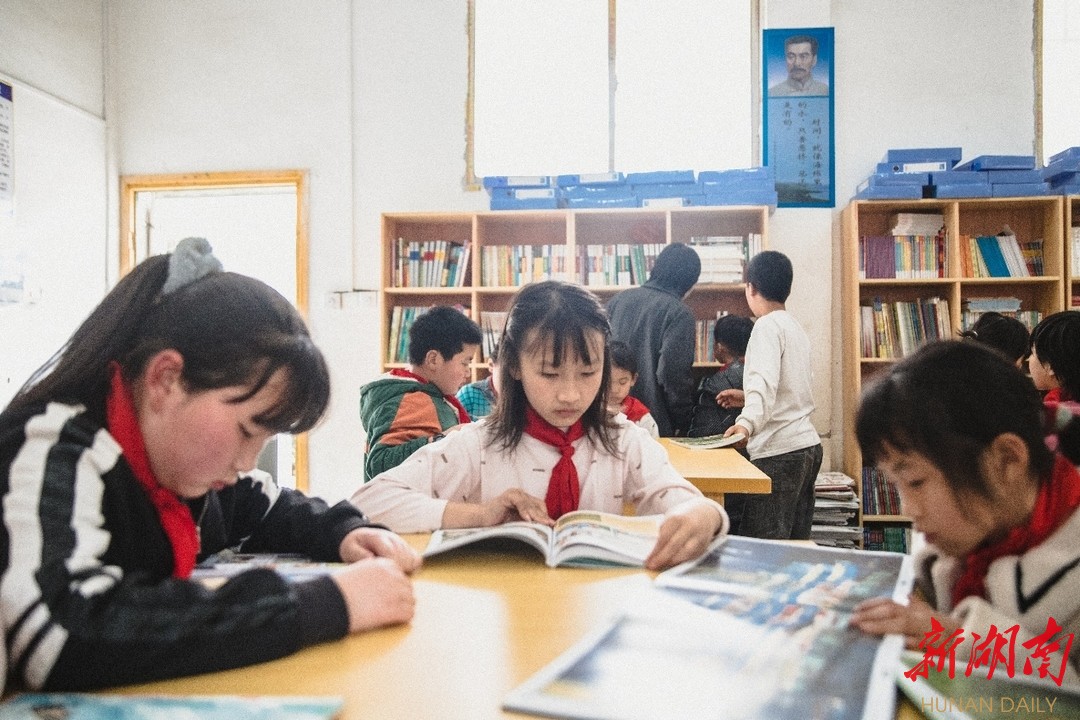 别看学校不大,咱们的藏书种类可不少。课后,孩子们尽情地在阅览室里赏世界美景,见历史更迭、探宇宙奥秘、游童话世界、寻未来之梦……