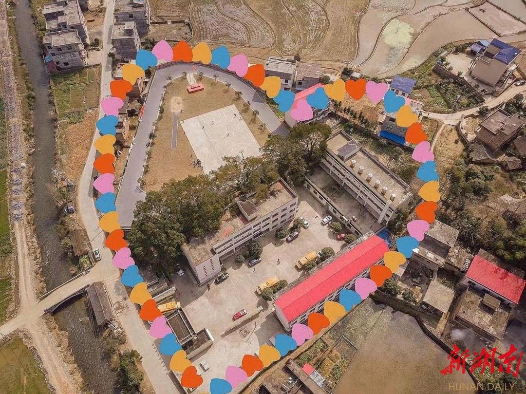 中田学校坐落在东安县一个宁静的小山村里,围墙围出的那颗小小爱心,虽然没有崭新高大的教学楼和气派的大门来装点,但因着有了可爱的学生和多才多艺的老师,有了琅琅书声和欢声笑语,有了迎风飘扬的五星红旗和跳动的校服衣角……便生出了多样的美。