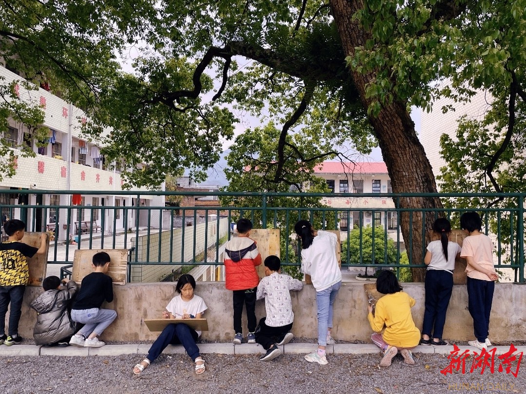 我们的双手挥得动锄头,也舞得起“艺术”这面彩旗。天气不错,我们一起在校园内画画、写诗、做手工、唱歌、演奏乐器……
