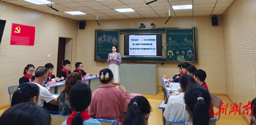 科教新报·新湖南客户端讯(通讯员 阳巧英)为加强学生思想教育,以促进学生的综合素质发展,2022年衡阳市第二届“校园思享会”思政辩论活动在蒸湘区实验小学拉开帷幕。4月25日下午船山英文学校小学部与呆鹰岭中平小学于两校代表队围绕“小学生应该广泛开展课外活动还是应抓紧课外时间学习?”这一辩题展开精彩辩论。