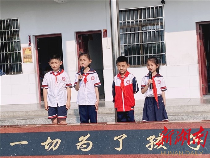 科教新报·新湖南客户端讯(通讯员 尹智慧)“我很小的时候,就有一个最好的朋友,它的名字叫——书,我很爱它……”4月11日,在益阳市人民路小学荞麦园村小读书月活动启动仪式上,汤佳玉等同学在鲜红的国旗下深情地朗诵儿童诗歌《我爱读书》,声音抑扬顿挫、清脆悦耳,情感跌宕起伏,直抵人心,在校园上空余音绕梁,令人心旷神怡。