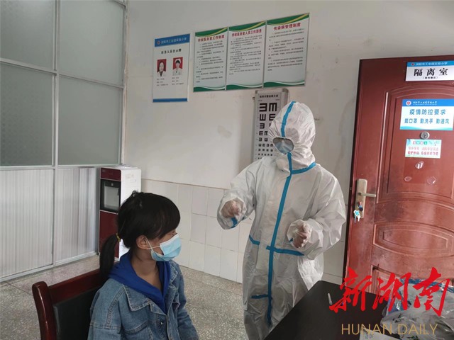 “老师,你们班晨检人数有一个对不上,请您再核查一遍。”“老师,你们班今天有两个孩子的第二针疫苗到时间了,请及时通知家长,尽早带孩子去接种疫苗。”“各位老师,今天要进行第三次核酸抽检,请安排好学生,有序排队。”......每天早上6点不到,浏阳市洞阳镇工业园实验小学防疫专干陈洁老师就要开始忙碌一天的工作。她要在第一批师生到校前,根据上级要求确保每一位进入校园人员的健康码均为绿码。