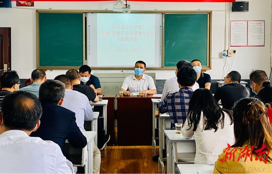 新湖南客户端4月29日讯(通讯员 陈丽辉)为深入贯彻落实“双减”政策,切实提升学校育人水平,加强作业管理和总结交流,促进作业管理工作可持续发展,让“双减”政策背景下的作业管理与设计更具科学性和合理性,用实际行动将“双减”政策落实到位,促进每一位学生健康、快乐成长,4月28日,双峰县荷叶镇中心学校在荷叶中学组织召开了“双减”背景下作业管理与设计交流研讨会。荷叶镇中心学校校务会成员,镇内11个中小学校的校长、教导主任、教师代表参加了活动,活动由荷叶镇中心学校党总支书记葛建定主持。