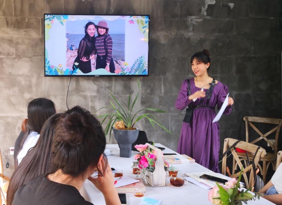 进修附小徐牧冉老师为大家带来的《突然长大》则是一本关于作者母女异国的万里遥两地书,没有太多惆怅,平淡的字句阐述母亲和女儿、老师和学生之间感动人心的爱,并带领老师们现场手工制作康乃馨送给坚强伟大的母亲们。