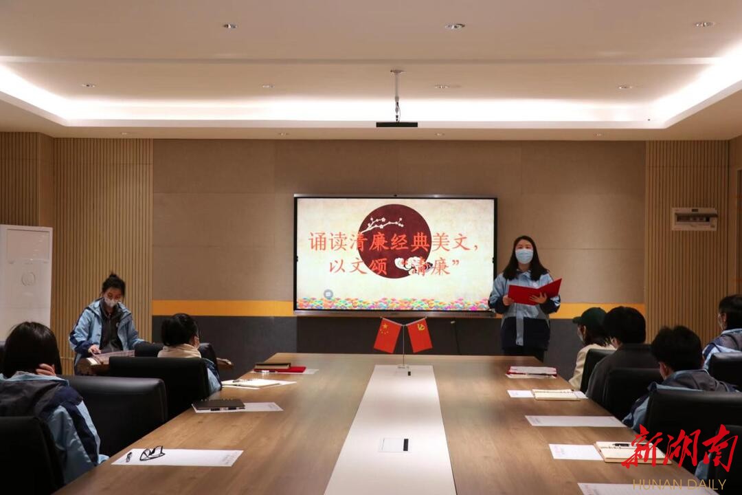 伴随着贺铱涵老师古典优雅的古筝伴奏,马士晴、毛敏、阮钱磊三名青年教师声情并茂诵读清廉美文,以文颂清廉。