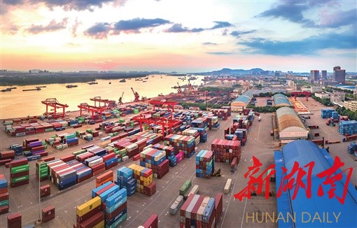 ( 通江达海的长沙新港码头,可停泊万吨巨轮。)