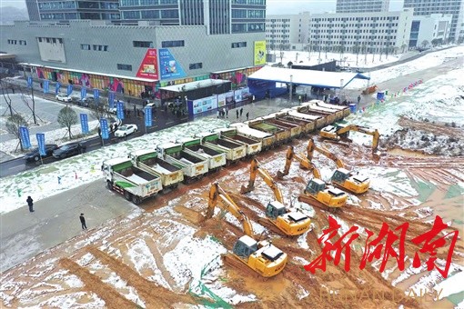( 2月7日,农历新年上班后的第一天,在皑皑白雪中金霞26个重大项目集中开工,实现“开门红”。 田超 摄)