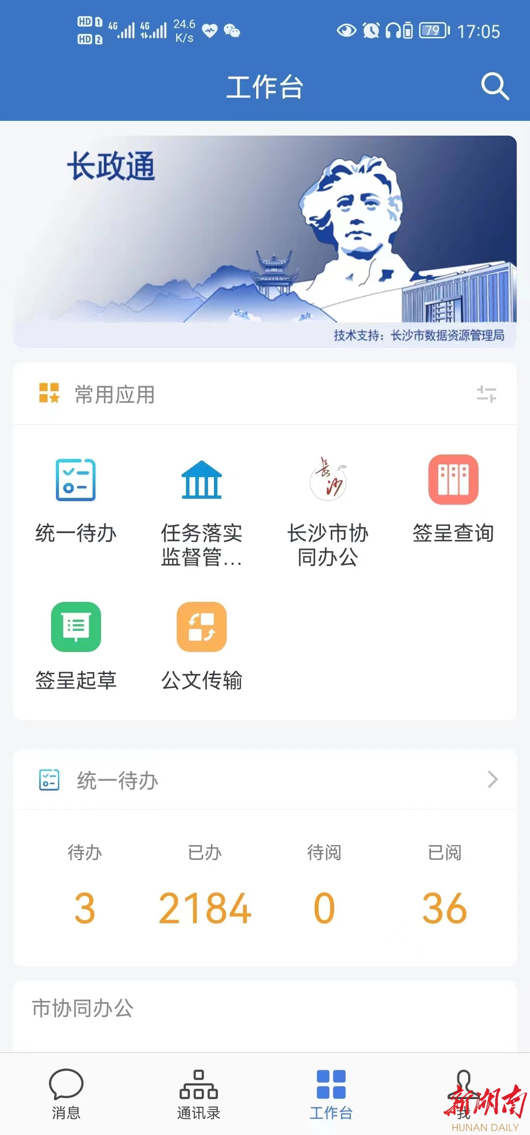 “长政通”APP部署在长沙市政务云上,可有效防止聊天记录、用户数据、组织架构等信息泄漏。有了这个“指尖办公神器”,全市公务人员不需要在多个办公APP指尖来回切换,仅通过一个入口便可进入相关应用轻松实现掌上办公。