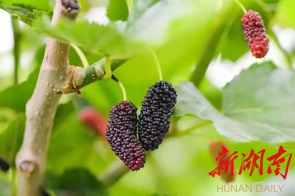 近日,呆鹰岭镇土桥村“果然心动”桑葚园迎来采摘期,众多市民游客前来采摘、游玩。10余亩葱茏繁茂的桑葚林里,紫红的桑葚挂满枝头,市民、游客穿梭其中,边摘边尝,享受惬意的美好时光。