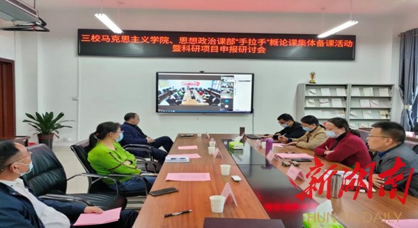 湖南日报·新湖南客户端4月18日讯(通讯员 周孝兰 谢佛荣 周忠香)为提升高校思政课教师的教学科研水平,4月15日,南华大学马克思主义学院与湖南商务职业技术学院马克思主义学院、湖南财经工业职业技术学院思想政治课部联合开展“手拉手”概论课集体备课活动暨科研项目申报研讨会活动。