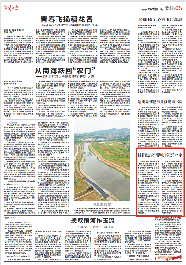 湖南日报4月24日讯(全媒体记者 颜石敦 通讯员 李卓林 李维坤)21日,记者沿着桂阳县翡翠公园台阶拾级而上,只见一座圆柱形建筑被山林拥抱,它有一个美丽的名字——“蓉城书屋”。