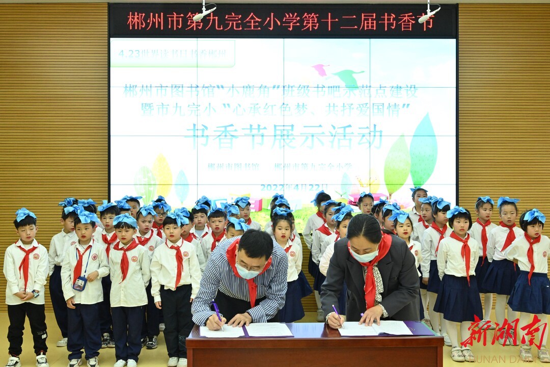 湖南日报·新湖南客户端4月23日讯(通讯员 郭阳锋 刘嫙子)4月22日,郴州市九完小举行第十二届书香节活动,郴州市图书馆“小白鹿”悦读会进校园活动同时在该校举行,迎接4月23日第27个世界读书日到来。