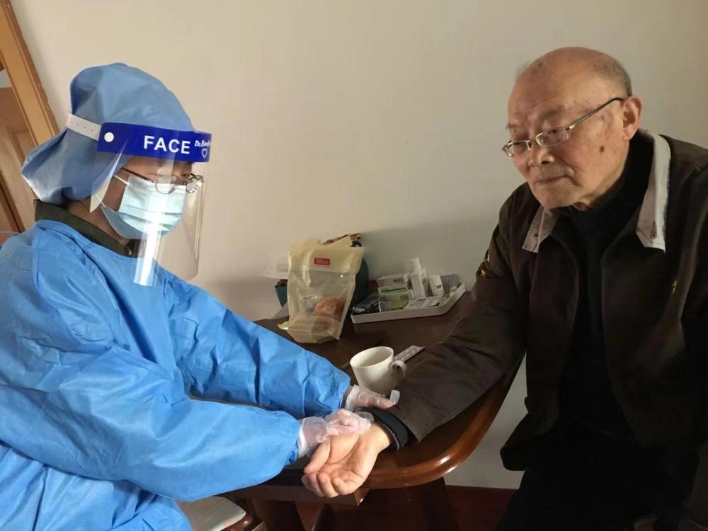 小区内的医生住户为心脏不适的老人上门诊治。受访者供图