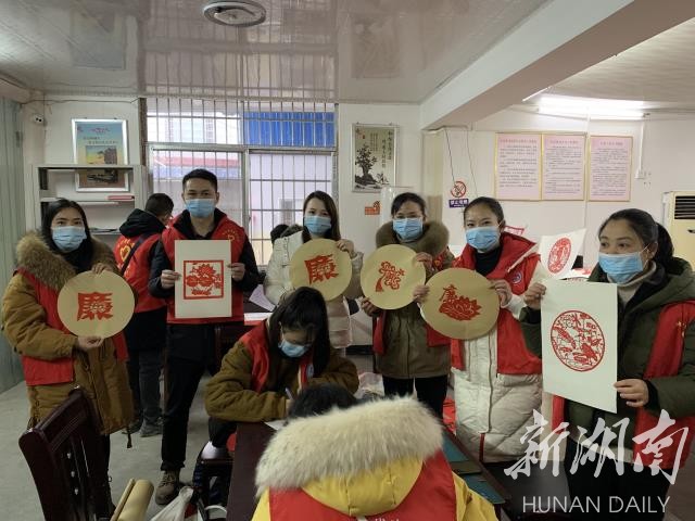 1月25日,靖州新时代文明实践志愿者来到江东街社区,别具匠心地将廉洁元素融入春联和剪纸中,为社区居民送去清廉新风。虽然寒风习习,但暖意浓浓。“勤政廉洁两袖清,美德良操百世铭”,身穿红马甲的志愿者手拿毛笔在纸上挥毫泼墨、笔走龙蛇,一个个遒劲奔放的大字跃然纸上。另一旁埋头剪纸的志愿者也是别具匠心,一张张鲜活的“清廉”剪纸作品精雕细琢、栩栩如生。伴着声声新春祝福,志愿者们将剪纸窗花和春联走街串户送到居民家中,红艳艳的“廉礼”让居民们感受到了别样的年味。