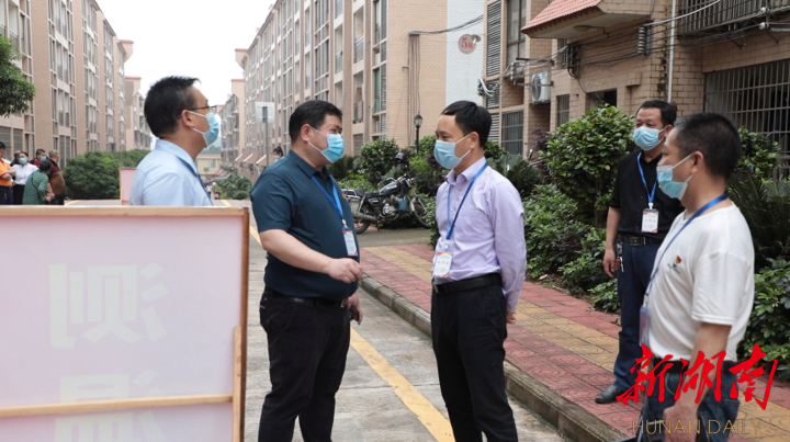 湖南日报·新湖南客户端4月27日讯(通讯员 李江辉 彭保华 刘文斌(实习生))4月27日,江华融媒体中心在春晓社区百家尾廉租房区域组织居民开展核酸检测应急演练,江华县委常委、县委办公室主任、春晓片区片长杨敏现场指挥演练。