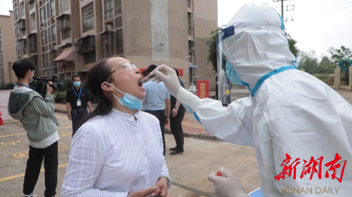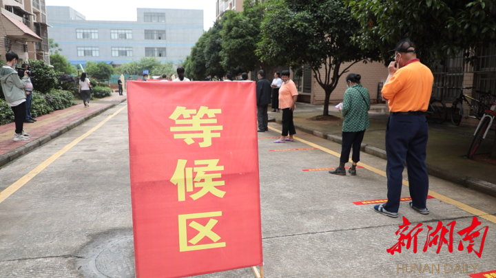 演练模拟发生疫情后,江华融媒体中心迅速组织百家尾廉租房区域居民进行全员核酸检测。