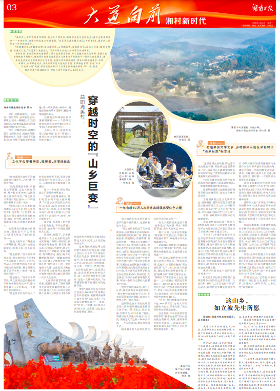 目前,益阳市组建工作专班抓紧推动相关项目实施。该市还将该景区拓展延伸至毗邻清溪村的北峰垸村,并将赫山区新市渡镇周扬故居和桃江县莫应丰故居、桃花江竹海风景区纳入其中,进一步丰富新时代“山乡巨变”内涵。