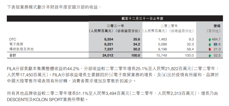 安踏集团介绍,收益增长主要得益于疫情缓和,以及品牌在零售市场表现有所好转,消费者需求增加及零售折扣减少。除此之外,两大品牌的电子商贸业务也保持增长。