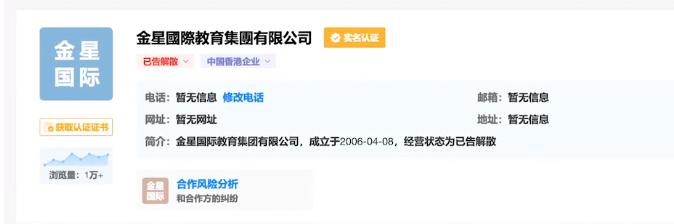 天眼查显示,金星国际教育集团有限公司已告解散。