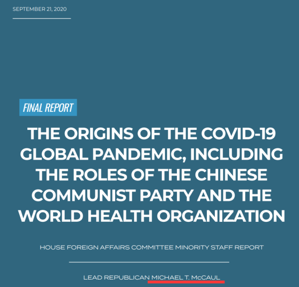 不仅如此,他在过去几年里还多次炮制污蔑抹黑中国的谣言。其中,在2020年和2021年,他就在美国国会众议院先后炮制了两份造谣说中国和世卫组织一起“隐瞒”新冠病毒源头的“报告”。