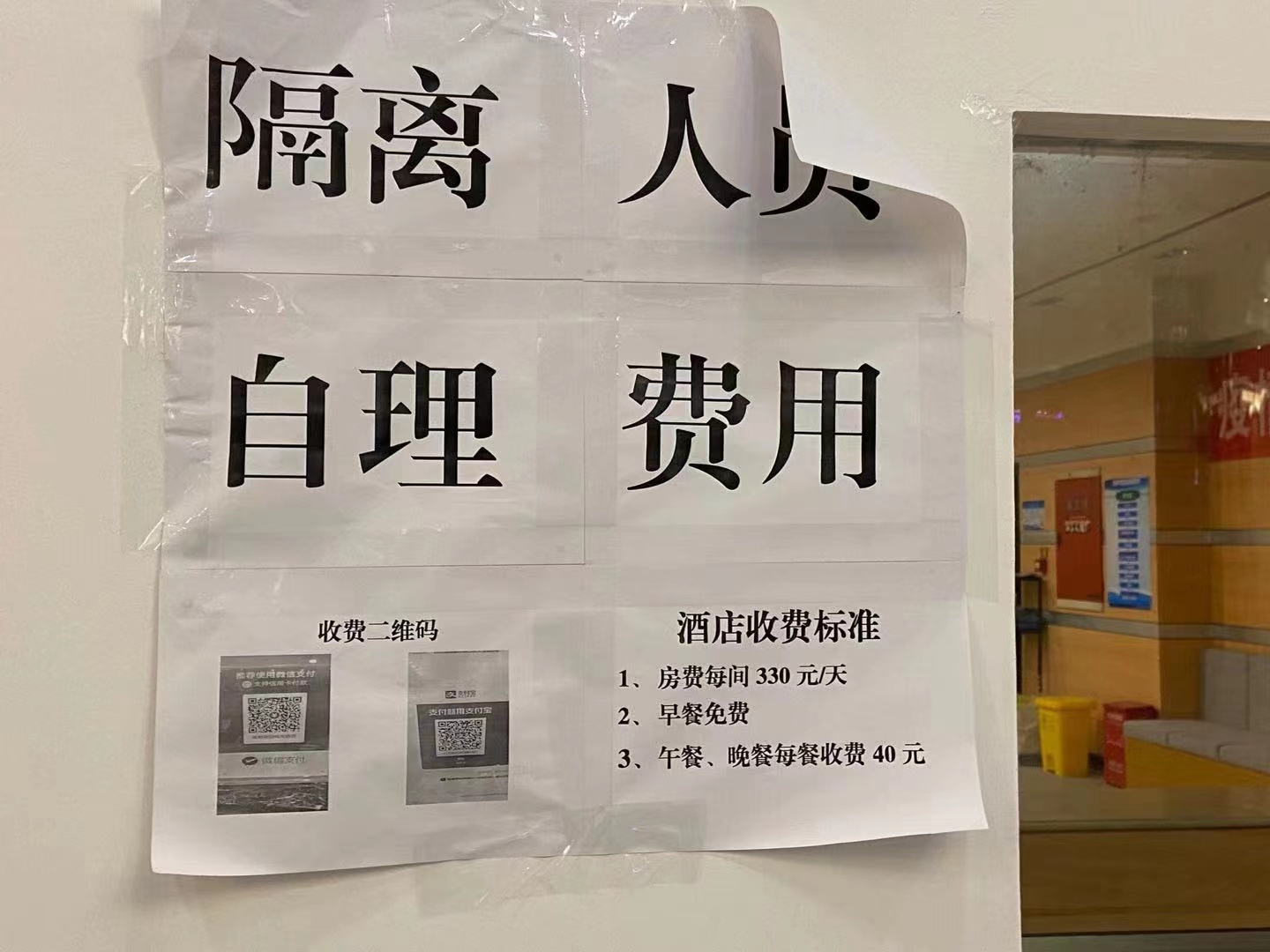 23日下午,另一名学生告诉记者,他从上海返回四川峨眉,出发前曾跟成都防疫人员确认社区闭环来接就可以走,且已经跟峨眉报备好了,峨眉的司机22日晚上也按时到达了成都东站,但到了才知道不能接走。他被送到了锦江区的花园城大酒店集中隔离。不过,酒店没有要求他们先缴费,而是说先入住,缴费的事后面再说。他们看到酒店张贴出来的通告是房费每间330元每天,早餐免费,午餐、晚餐每餐收费40元。23日早晨,他们有同学找到酒店负责人谈收费的事。酒店方后来表示,尽量争取免费,现在的确也是对学生免食宿费,社会人士降价优惠。
