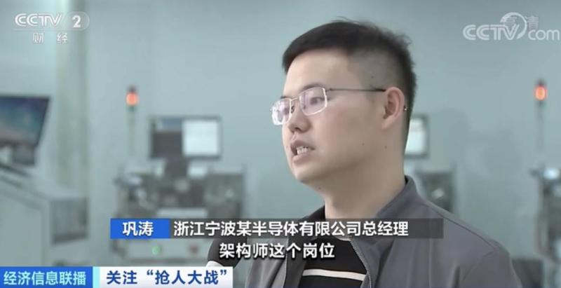 浙江宁波某半导体有限公司总经理 巩涛:像MCU(单片微型计算机)这一块,架构师这个岗位,以前的起薪大概是100万元左右,现在起薪竞争到至少是200万元起了。