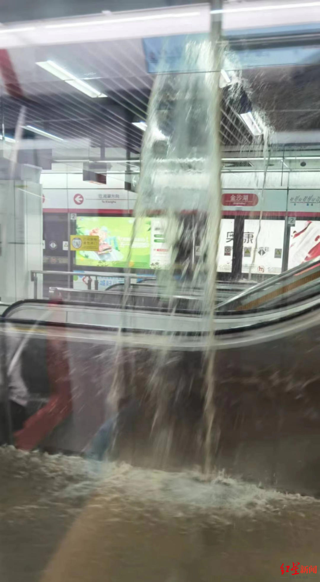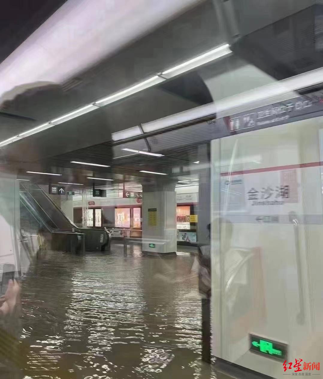 ▲5月18日,杭州地铁1号线金沙湖站大量积水