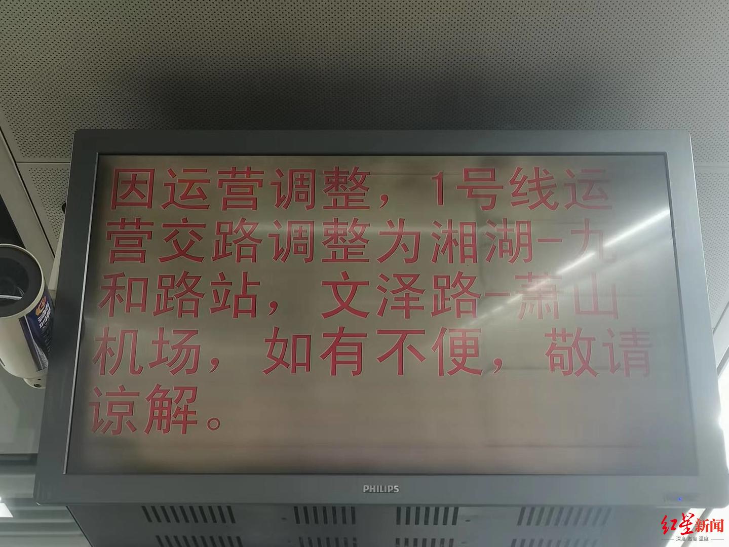 李先生向红星新闻回忆,傍晚,车厢行驶途中,显示屏上突然只有“九和路”是亮着的,其余站点都暗了下来。身边的不少乘客不时看向站点显示屏,他才意识到,显示屏的变化是在通知乘客运营线路调整。