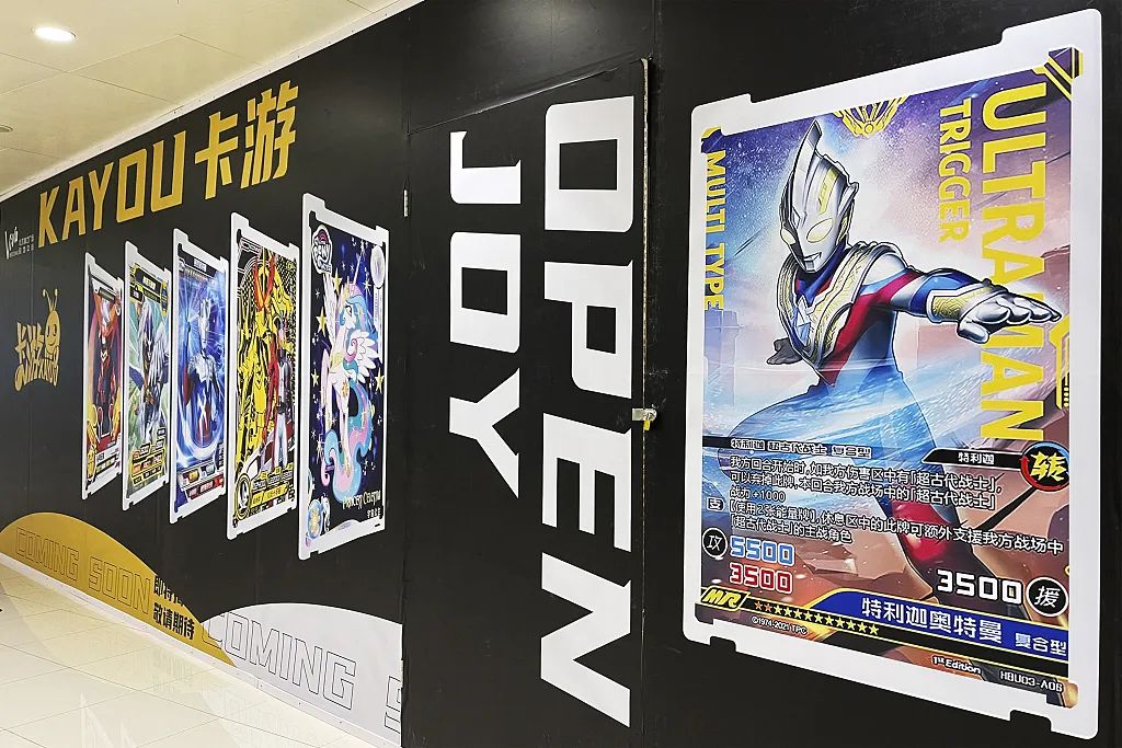 2021年11月28日,北京富力广场购物中心,卡游奥特曼卡牌连锁店广告。图/视觉中国