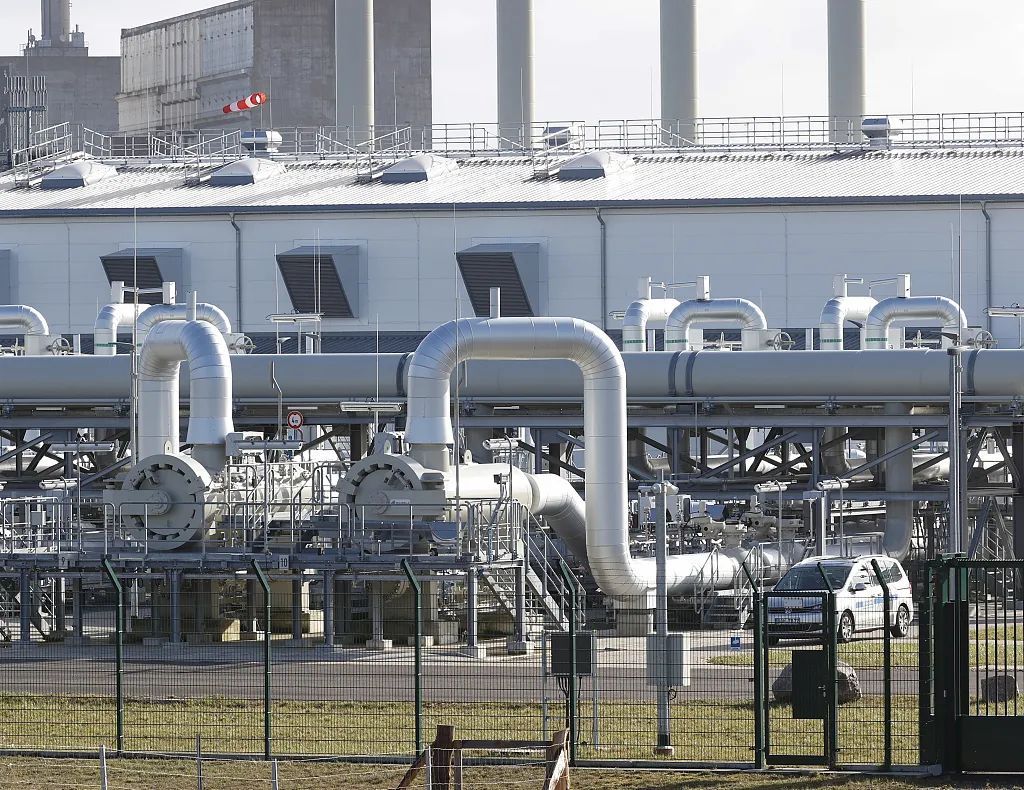 当地时间2022年2月23日,德国卢布明,“北溪2号”天然气管道的设施。