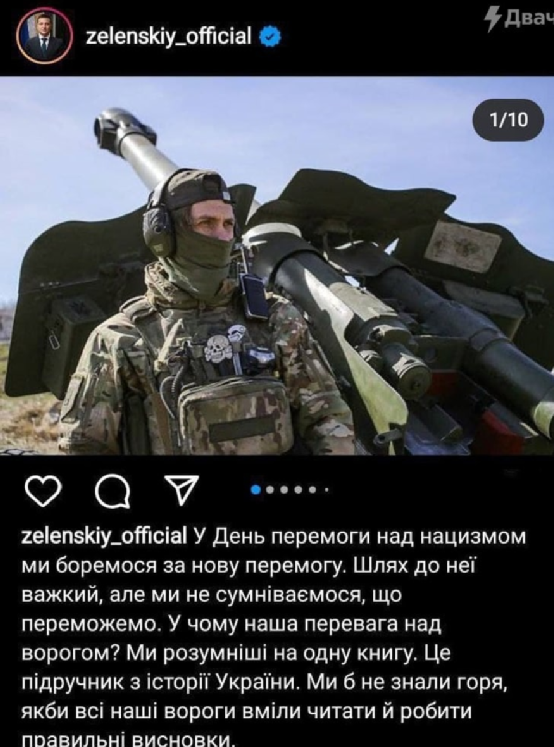 昨天,在纪念5月9日欧洲战场的反法西斯战争胜利日时,乌克兰总统泽连斯基以及乌克兰国防部分别在他们的社交媒体账号上发布了一张极具争议的照片。