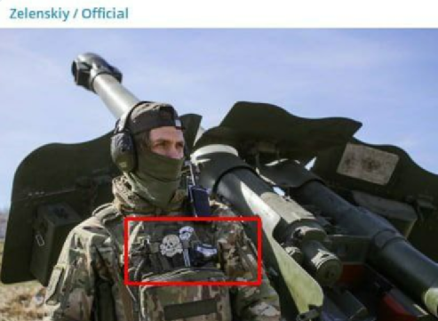 图为被泽连斯基和乌克兰国防部所宣传的乌克兰士兵佩戴的“骷髅头”徽记
