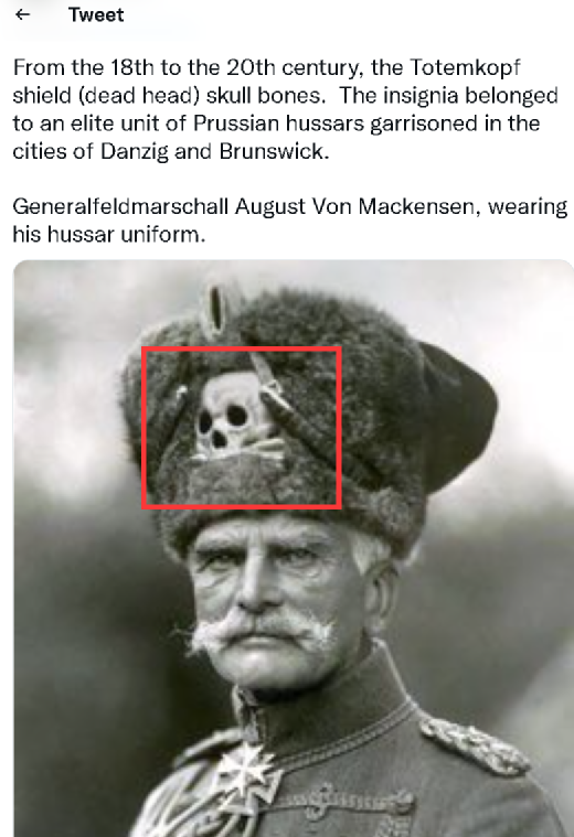 尽管有网民表示,使用“骷髅头”作为军队的徽记早在纳粹之前就存在于德军或更早前的普鲁士军队之中,但根据专门曝光和举报“反犹太人言论”与“纳粹主义”的以色列国际团体“反诽谤联盟”(ADL)的介绍,德国纳粹党卫军及其“骷髅部队”使用的是一种很独特的“骷髅头”徽记,与纳粹之前德军或普鲁士一些军官佩戴的“骷髅头”徽记存在明显不同。