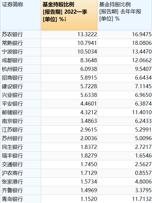 数据显示,截至今年一季度末,公募基金对苏农银行、常熟银行、宁波银行的持股比例超过10%。