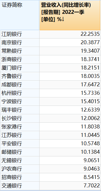 数据显示,今年一季度,共有江阴银行、南京银行、常熟银行、浙商银行等15家上市银行营业收入同比增速超10%,杭州银行、张家港行、沪农银行等26家上市银行归母净利润同比增速超10%。