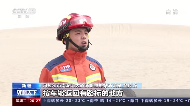 位于新疆南疆的塔里木盆地中心的塔克拉玛干沙漠,是世界第二大流动沙漠,广袤无垠的沙漠是不少人野外探险的圣地。消防员告诉记者,塔克拉玛干沙漠的狂风能将沙墙吹起,还能时常将绵延的沙丘移动,很容易被强大的沙尘暴困住,甚至迷失方向。