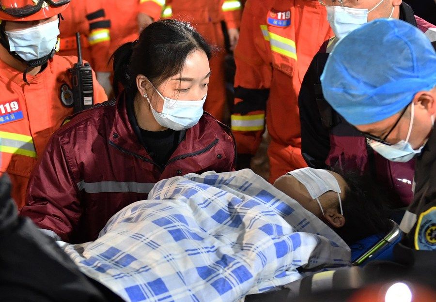 5月1日16时27分许,经过26个小时的救援,位于倒塌房屋西侧的女孩被抬出,成为第6名获救者。医务人员立即为她盖上被子,救援现场响起掌声,有人流下眼泪。
