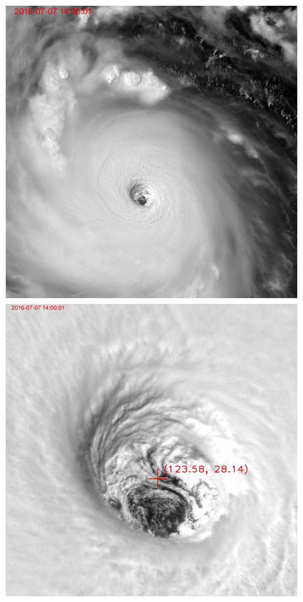 ▲图为2016年台风“尼伯特”台风眼区高清图,由高分四号卫星拍摄。
