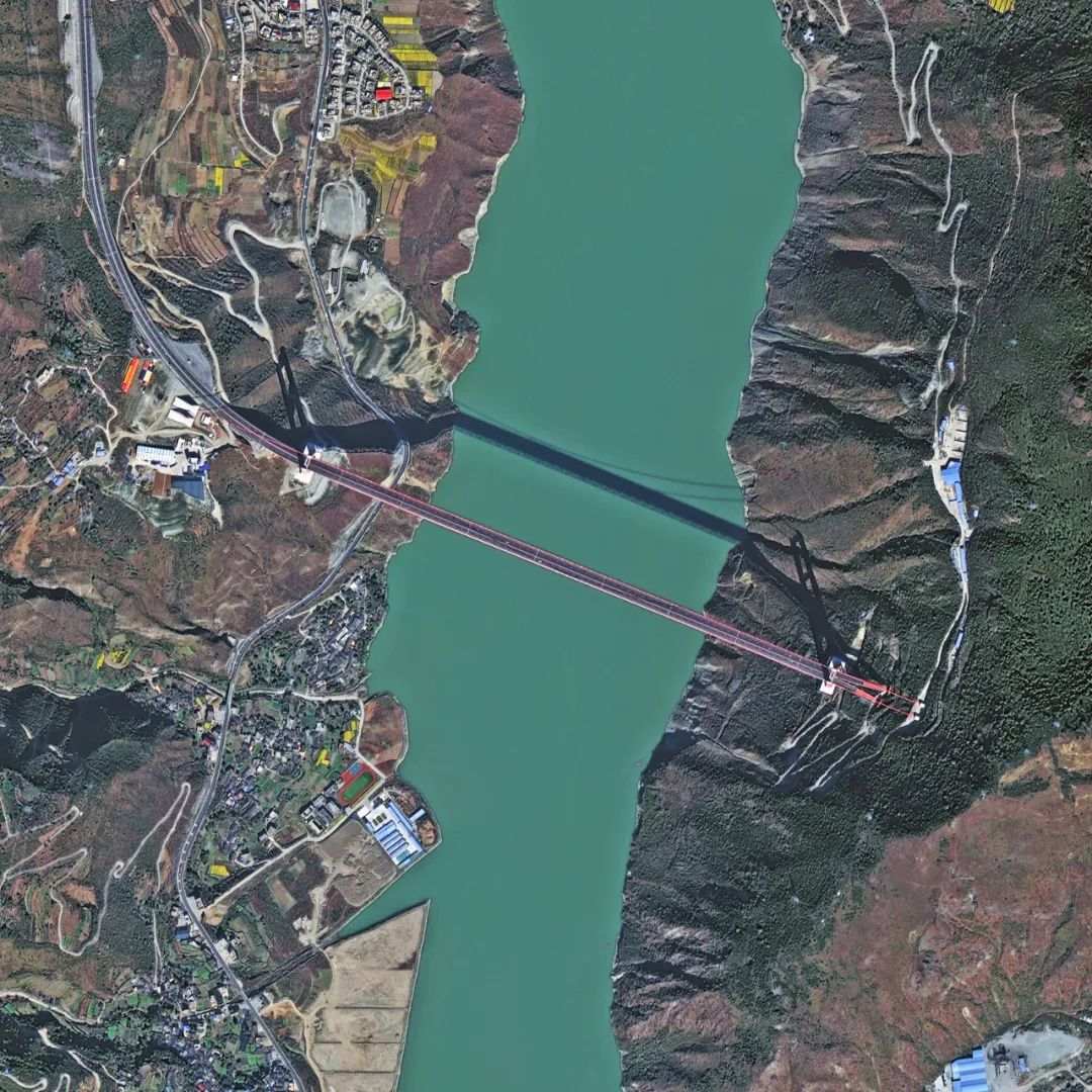 ▲图为2020年10月30日,四川省甘孜藏族自治州泸定县境内的兴康特大桥,大桥钢索的影子都被清晰拍摄了下来,由高分二号卫星拍摄。