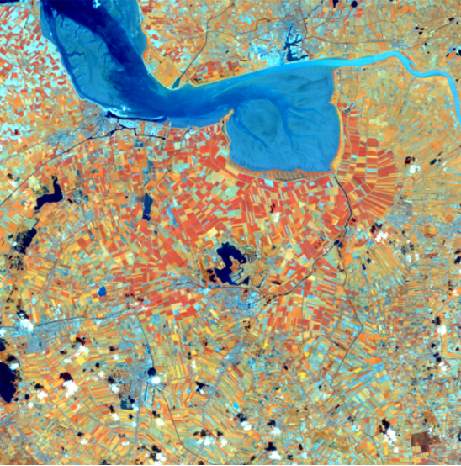 ▲图中从上到下分别为:湖南省常德市洞庭湖平原稻区农田影像(2018年6月16日)、黑龙江省海伦市粮豆轮作区农田影像(2018年7月1日)、新疆昌吉州呼图壁县戈壁滩中的农田影像(2018年6月17日)、荷兰和德国交界处的农田影像(2018年6月6日),由高分六号卫星拍摄。