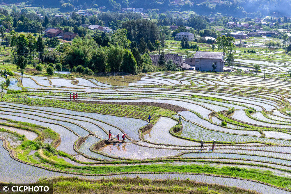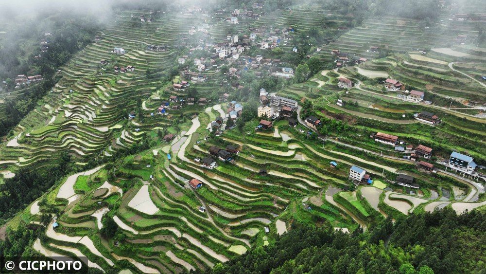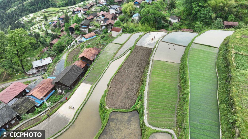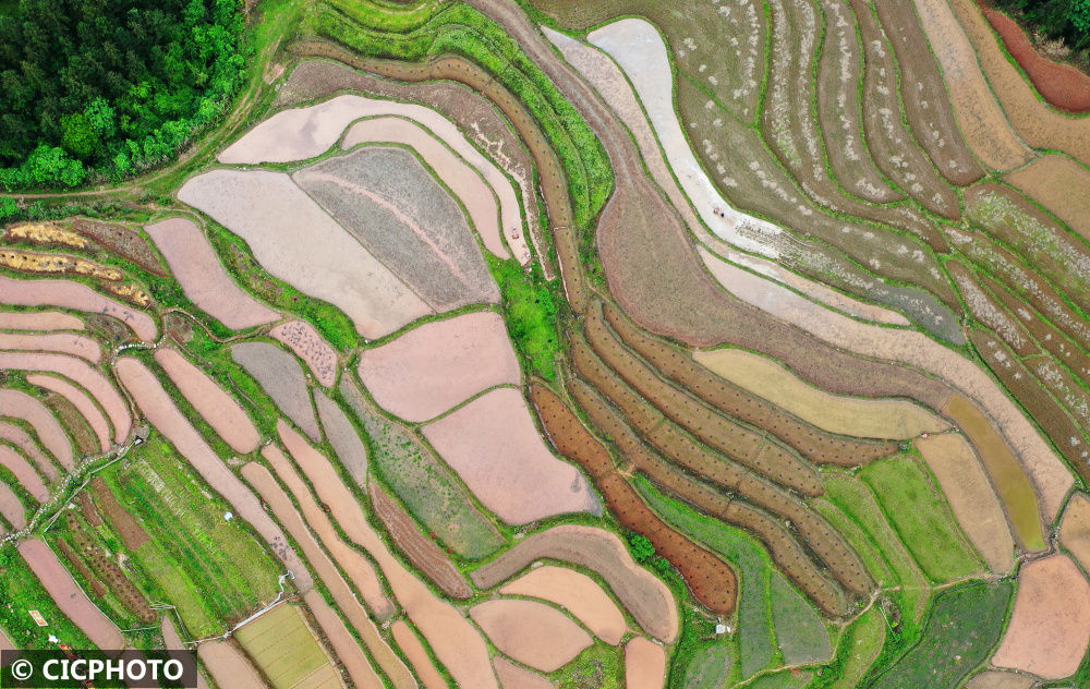 初夏时节,全国多地梯田草木葱茏,纵横阡陌,层次分明,勾勒出一幅美丽田园画卷。农民抢抓时令,灌水翻耕、育秧备种,梯田上呈现一派繁忙的劳作景象。梯田是在丘陵山坡地上沿等高线方向修筑的条状阶台式或波浪式断面的田地,是治理坡耕地水土流失的有效措施,蓄水、保土、增产作用十分显著。