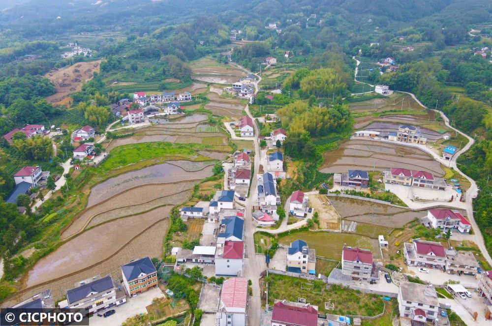 ↑2022年5月15日在江西省上饶市婺源县溪头乡江岭村拍摄的景色。(无人机拍摄)CICPHOTO/王国红 摄