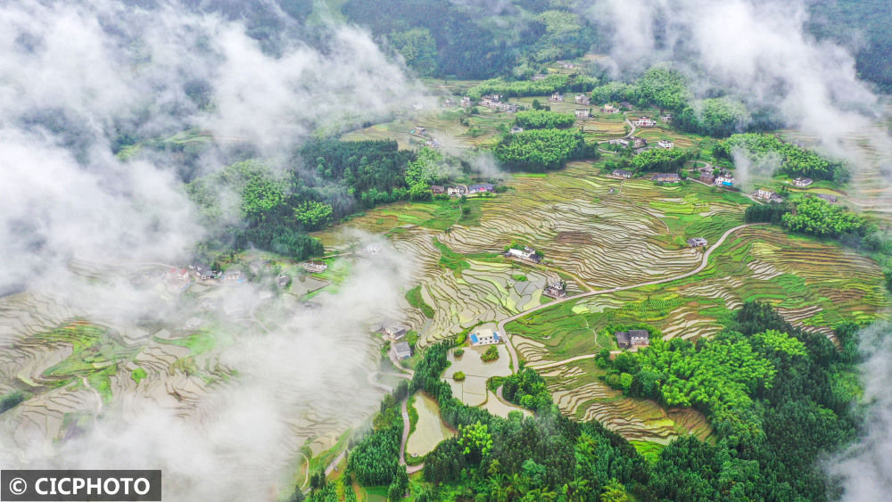 ↑2022年5月13日在重庆市南川区石溪镇盐井村拍摄的景色。(无人机拍摄)CICPHOTO/瞿明斌 摄