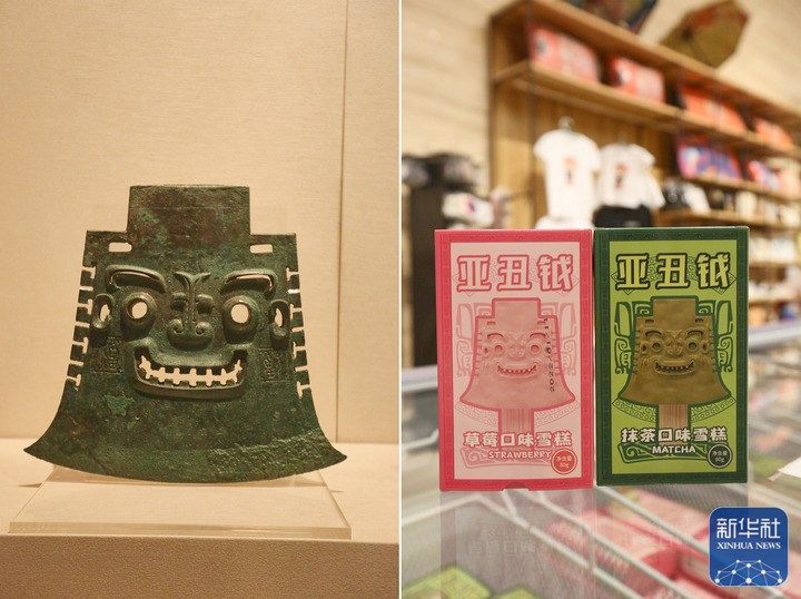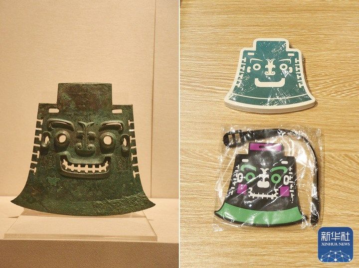 藏于山东博物馆的商代青铜器亚醜(丑)钺1965年出土于山东青州,器身透雕人面纹,人面口部两侧铭有“亚醜”二字。亚醜钺人面造型呆萌可爱,山东博物馆以其为原型推出了行李牌、书签、抱枕、雪糕等相关文创产品。