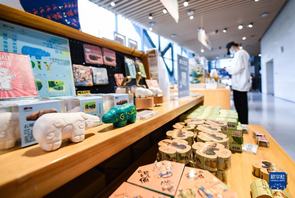 5月17日,参观者在成都博物馆文创商店选购商品。